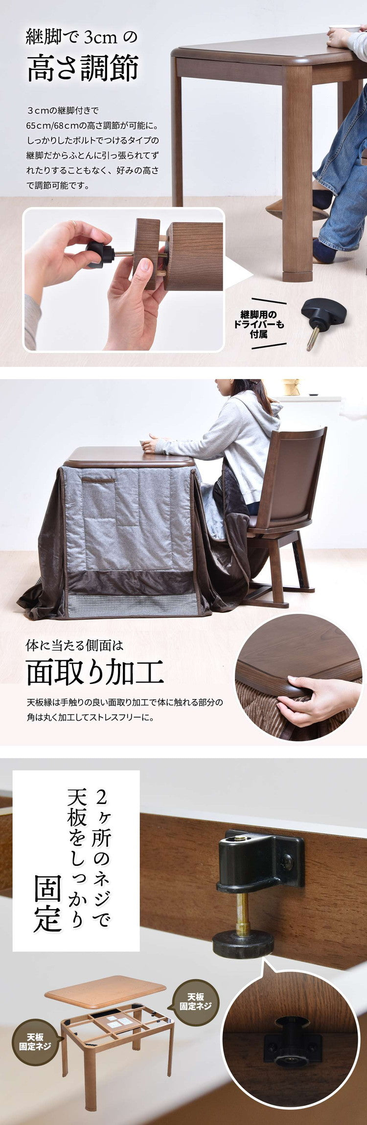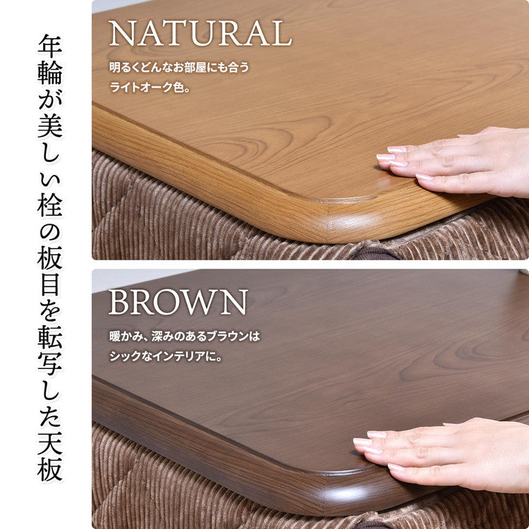 素材:【天板】プリント化粧合板(UV塗装) 【脚フレーム】天然木(ウレタン塗装)【ヒーター】U字型ハロゲンヒーター「メーカー型番:MHU-601E(D)」 /