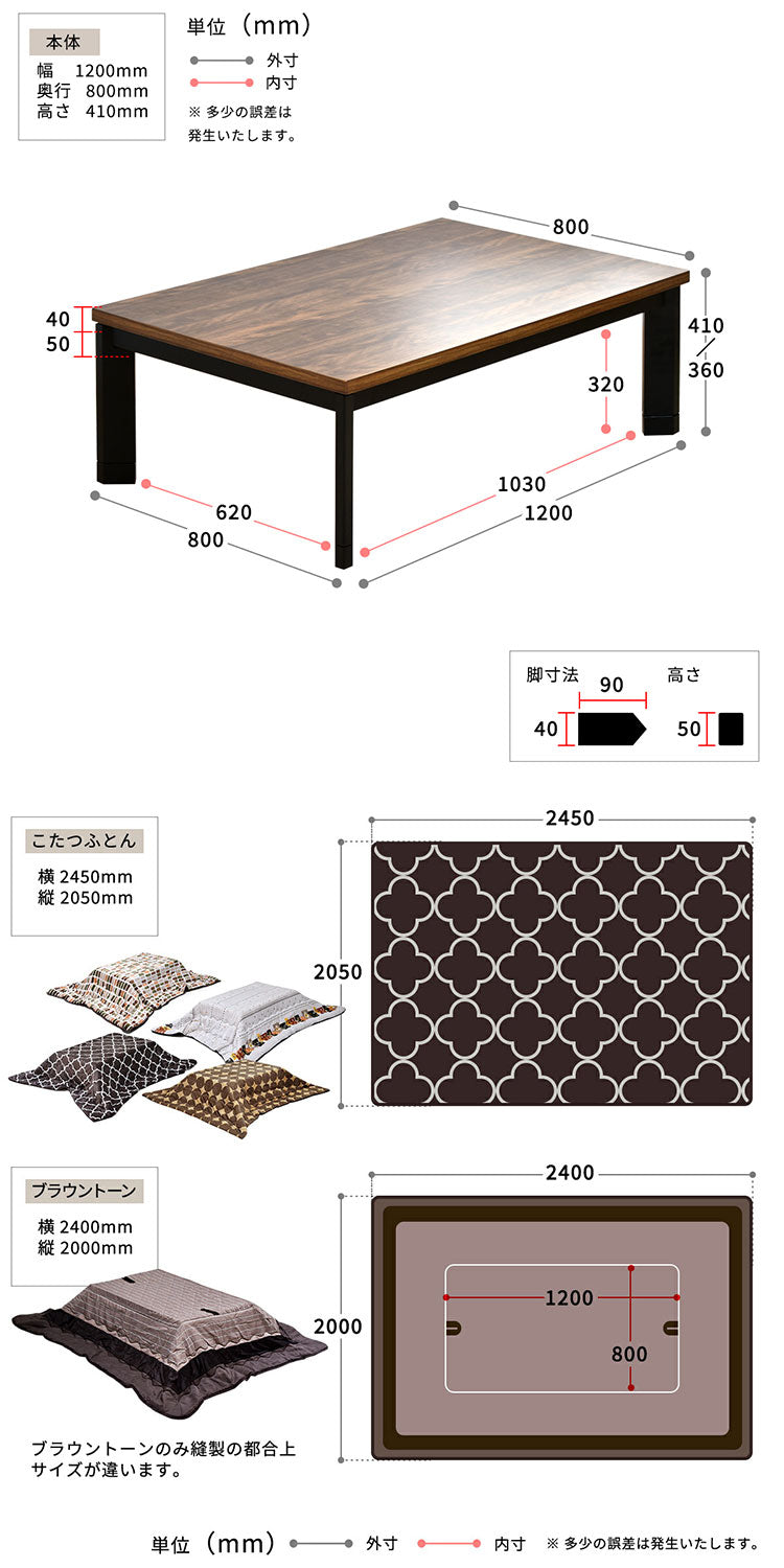 商品サイズ:幅1200×奥行800×高さ360~410mm /