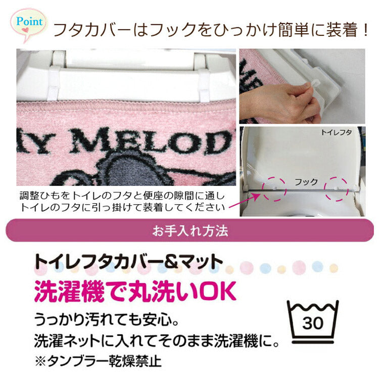 クロミ マイメロディ トイレマット トイレカバー トイレ2点セット ウォッシャブル 滑りにくい 洗える おしゃれ トイレ 洗浄便座 暖房便座 真夜中のメロクロ サンリオ SANRIO(代引不可)