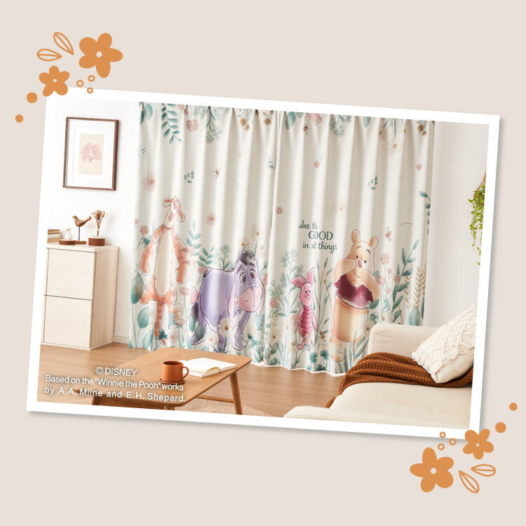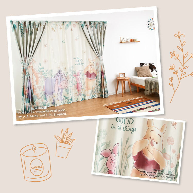プーさん絵羽レースカーテン 2枚組 100×148cm UVカット 洗える 洗濯 プライバシー 目隠し フック付き カーテン 紫外線 おしゃれ かわいい ディズニー くまのプーさん ピグレット ティガー イーヨー(代引不可)