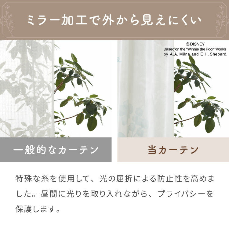 プーさん絵羽レースカーテン 2枚組 100×176cm UVカット 洗える 洗濯 プライバシー 目隠し フック付き カーテン 紫外線 おしゃれ かわいい ディズニー くまのプーさん ピグレット ティガー イーヨー(代引不可)