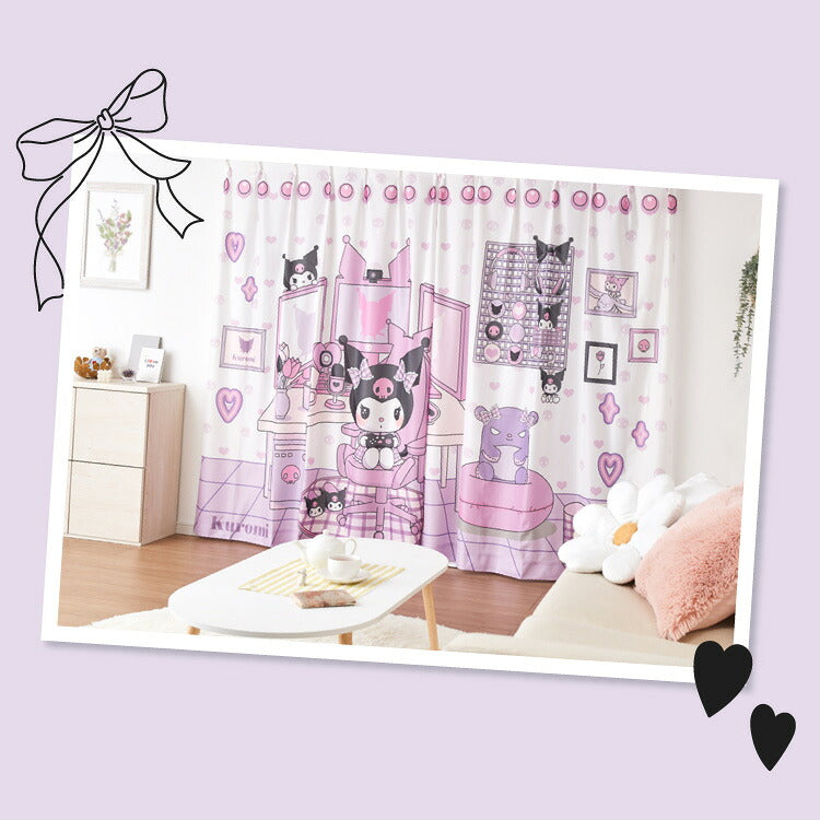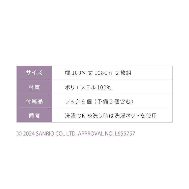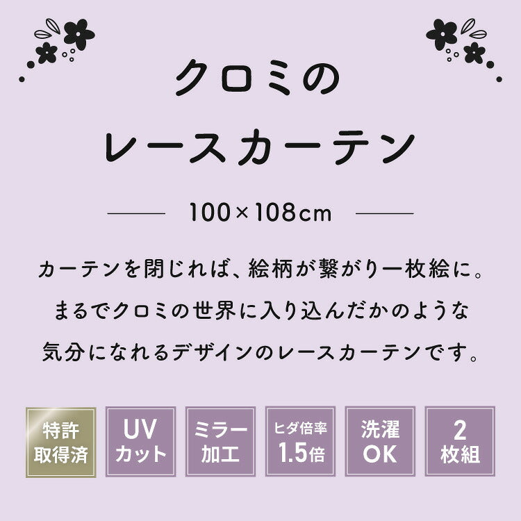 クロミ絵羽レースカーテン 2枚組 100×108cm UVカット 洗える 洗濯 プライバシー 目隠し フック付き カーテン 紫外線 おしゃれ かわいい サンリオ マイメロディ クロミ バク(代引不可)