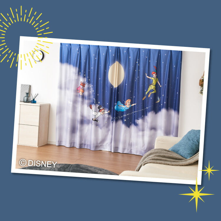 ピーターパン絵羽レースカーテン 2枚組 100×176cm UVカット 洗える 洗濯 プライバシー 目隠し フック付き カーテン 紫外線 おしゃれ かわいい ディズニー ピーターパン ティンカーベル ウェンディ(代引不可)