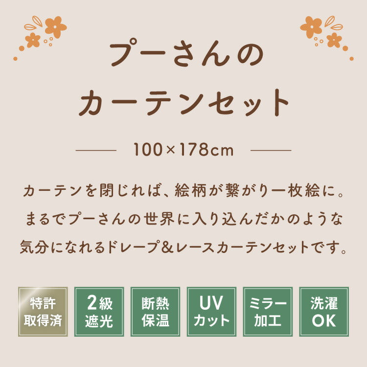 プーさんの2級遮光カーテンとレースカーテンの4枚セットです。