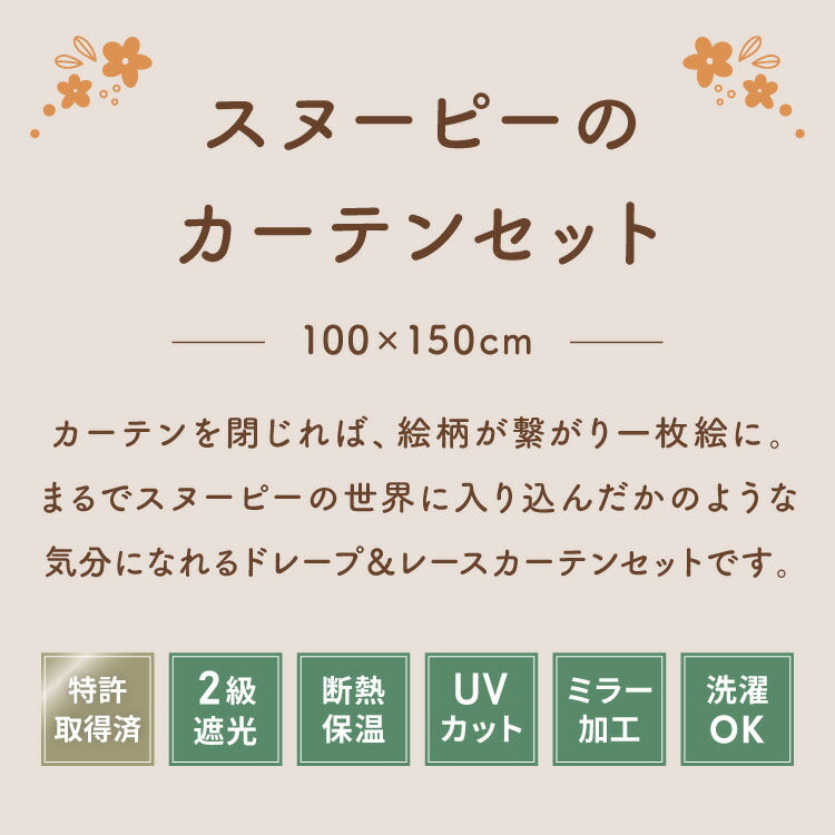 スヌーピーの2級遮光カーテンとレースカーテンの4枚セットです。