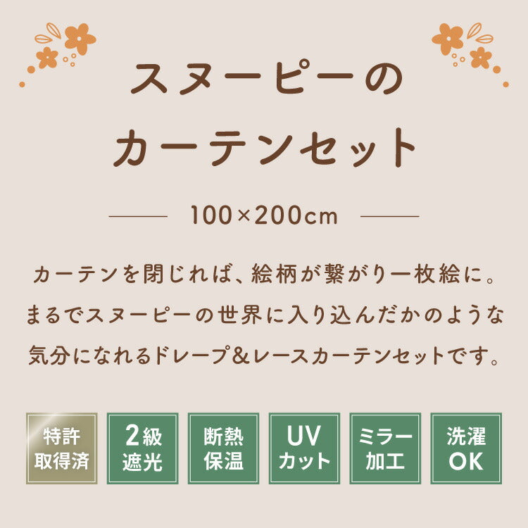スヌーピーの2級遮光カーテンとレースカーテンの4枚セットです。