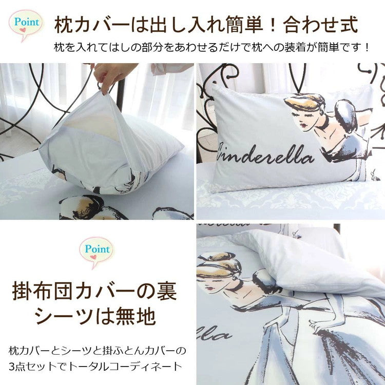 シンデレラ ディズニー 布団カバー3点セット 丸洗い可 シングル Disney 枕カバー 掛布団カバー シーツ 洋式 和式 布団カバー 敷布団カバー ピローケース(代引不可)