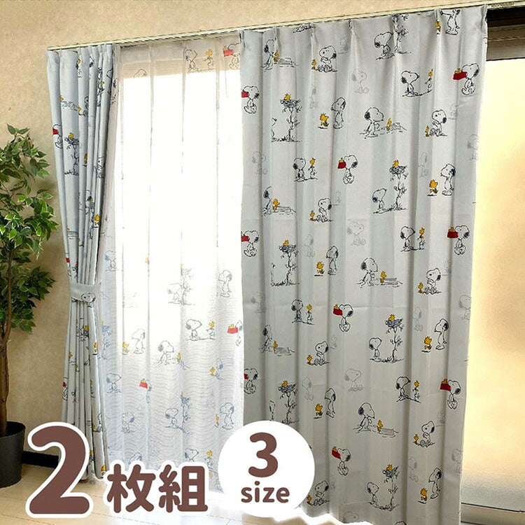 Peanuts ピーナッツ スヌーピー カーテン 遮光2級 遮光カーテン 2枚組 遮光 洗える ウォッシャブル タッセル付き 北欧 おしゃれ ドレープカーテン(代引不可)
