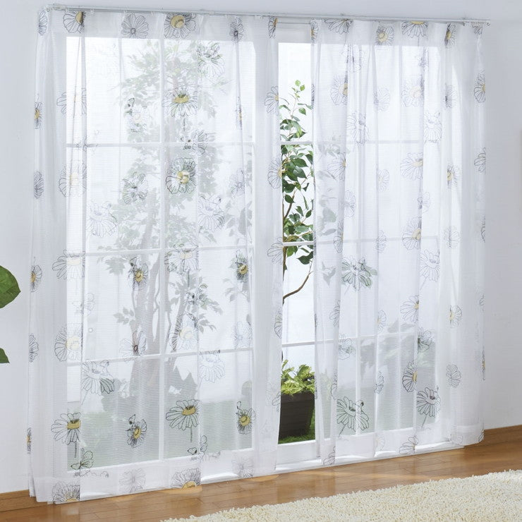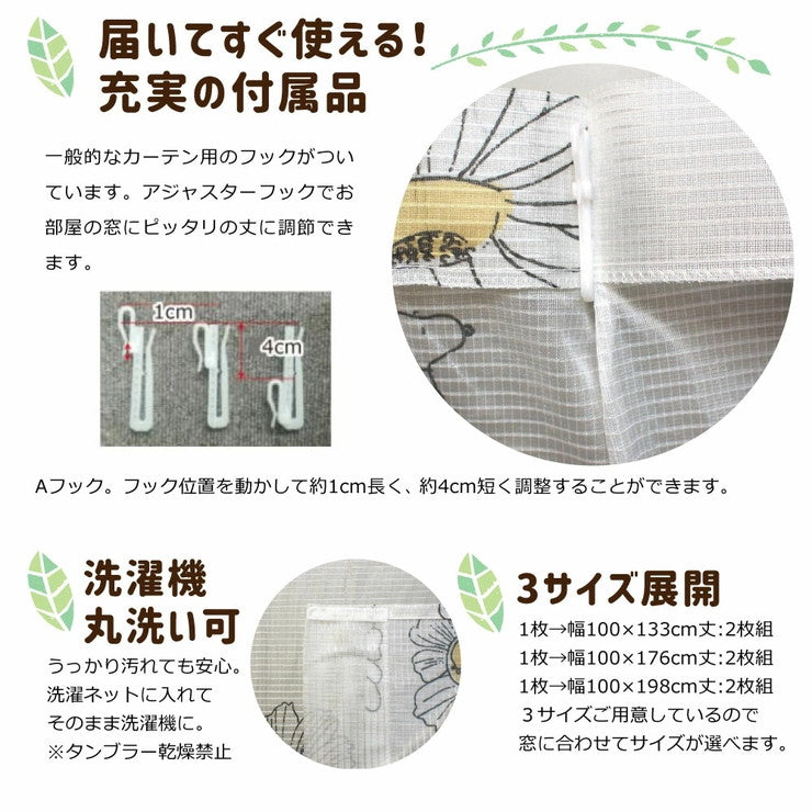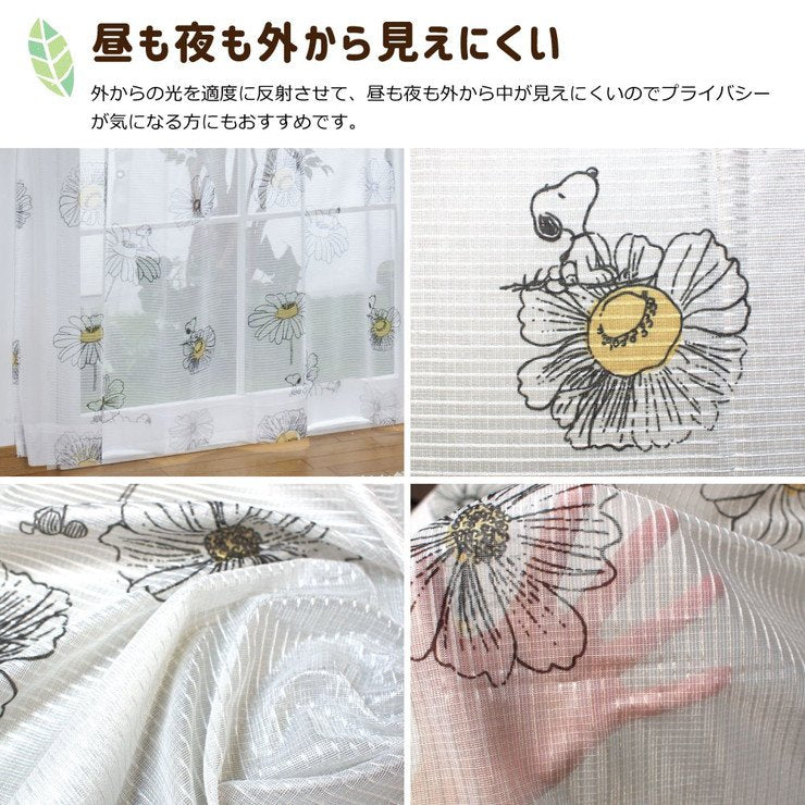 レースカーテン 2枚組 スヌーピー フラワー 幅100 丈133cm 丈176cm 丈198cm 外から見えにくい Snoopy Peanuts(代引不可)