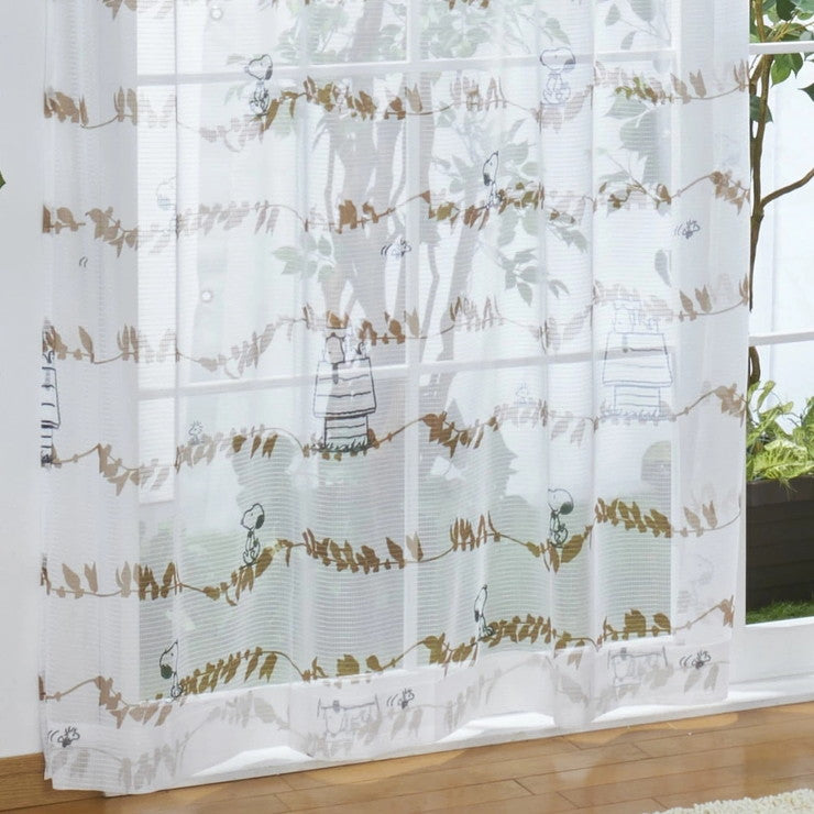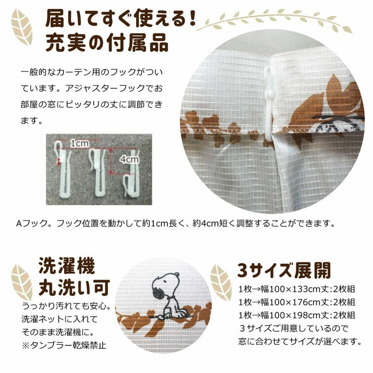レースカーテン 2枚組 スヌーピー リーフ 幅100 丈133cm 丈176cm 丈198cm 外から見えにくい Snoopy Peanuts おしゃれ(代引不可)