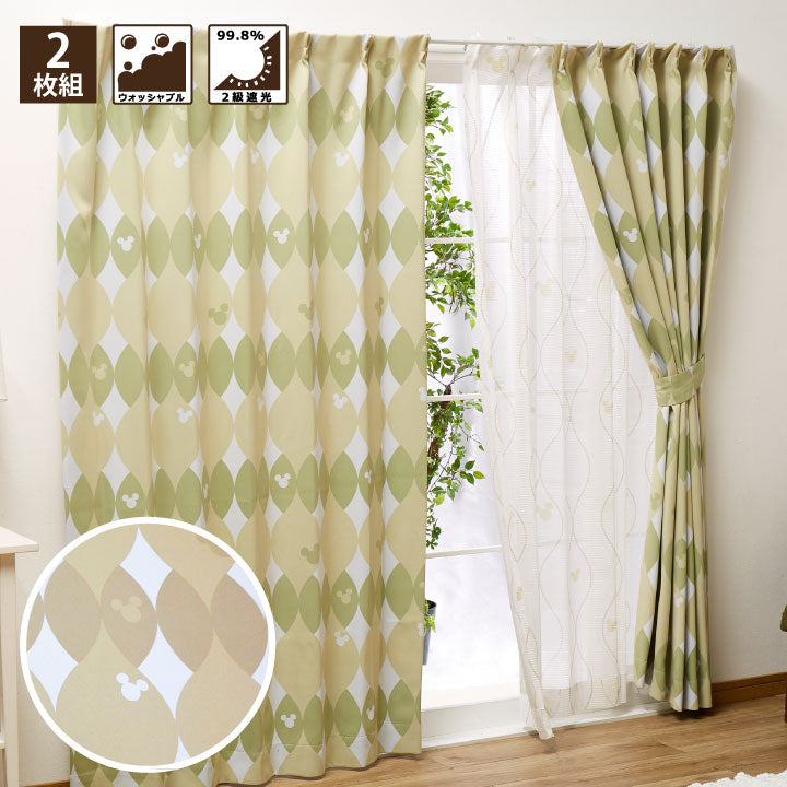 三ツ丸ミッキー 遮光カーテン 北欧風 2級遮光 2枚組 幅100 丈135 丈178 cm 丈200cm ウォッシャブル 丸洗い Disney ディズニー(代引不可)