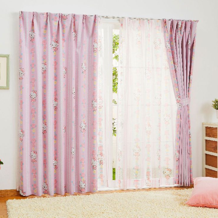 遮光カーテン 2枚組 キティ 【3サイズ】 幅100cm 丈135cm 丈178cm 丈200cm 遮光2級 遮熱 ウォッシャブル サンリオ(代引不可)