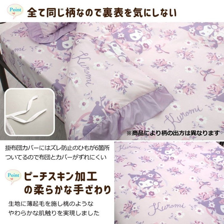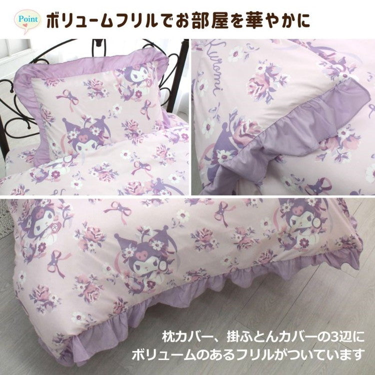 サンリオ クロミ 布団カバー3点セット 敷布団カバー シングルロング フィットシーツ ボックスシーツ かけ布団カバー ベッドシーツ 枕カバー フリル(代引不可)