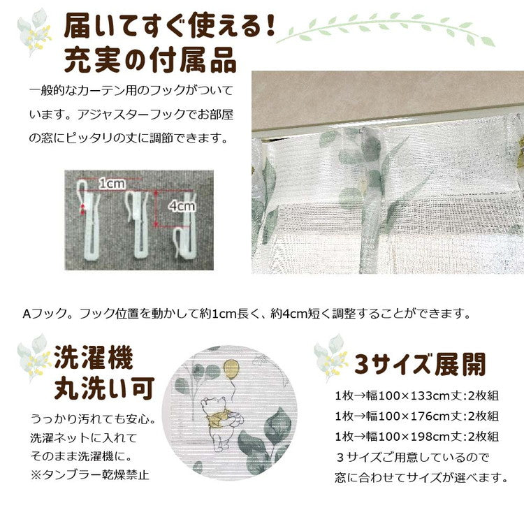 くまのプーさん レースカーテン 2枚セット 3サイズ UVカット 外から見えにくい UVカット 外から見えにくい UVカット ディズニー プー ティガー pooh イーヨー 丸洗い可 キャラクター 断熱(代引不可)