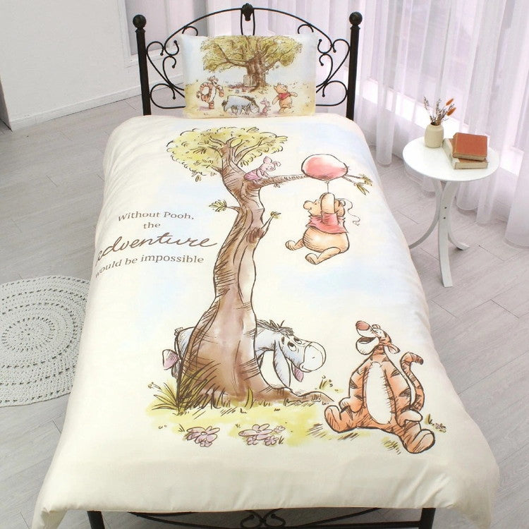 Desney ディズニー くまのプーさん 布団カバー3点セット 敷布団カバー シングルロング フィットシーツ ボックスシーツ かけ布団カバー ベッドシーツ 枕カバー(代引不可)