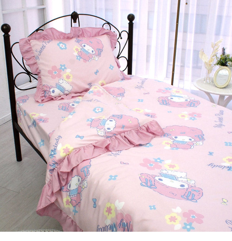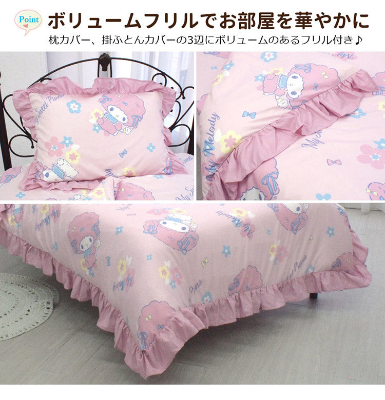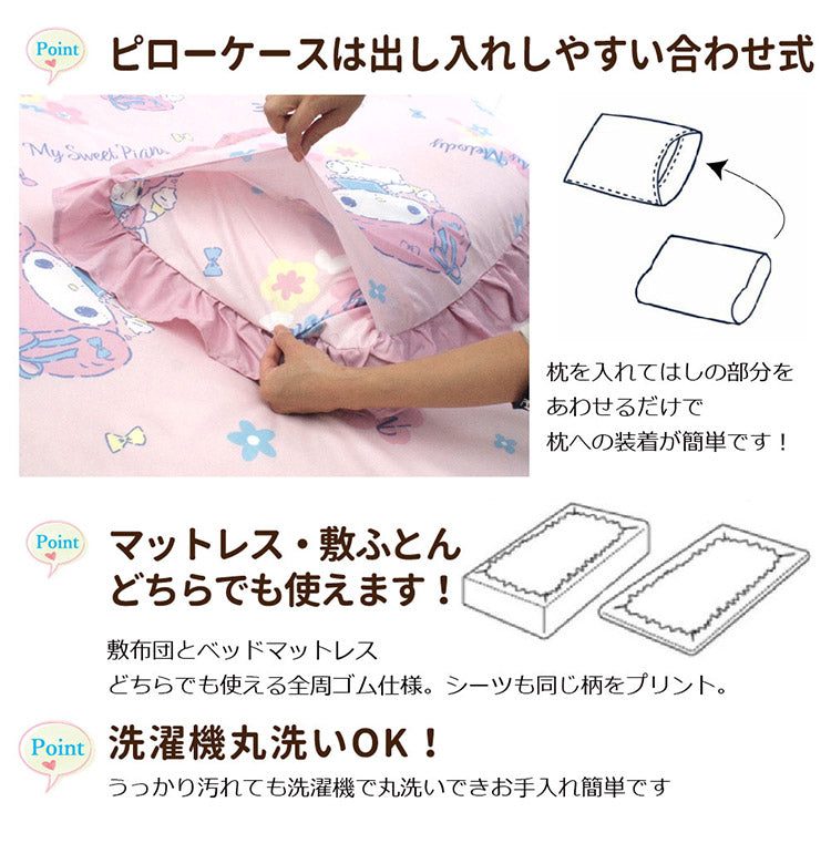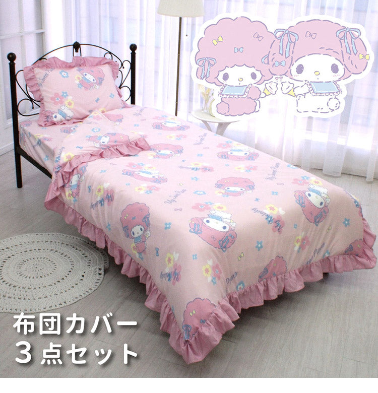 マイメロディ&マイスウィートピアノ 布団カバー3点セット シングル 和式 洋式 布団カバー 掛布団カバー 3点セット ベッドシーツ 敷布団カバー 枕カバー 丸洗い可 寝具 マイメロ(代引不可)