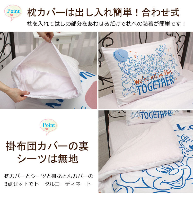 ミッキー&フレンズ 布団カバー3点セット シングル 布団カバー 掛布団カバー 3点セット 敷布団カバー 枕カバー 丸洗い可 キャラクター ミニー デイジー ドナルド グーフィー プルート ディズニー(代引不可)