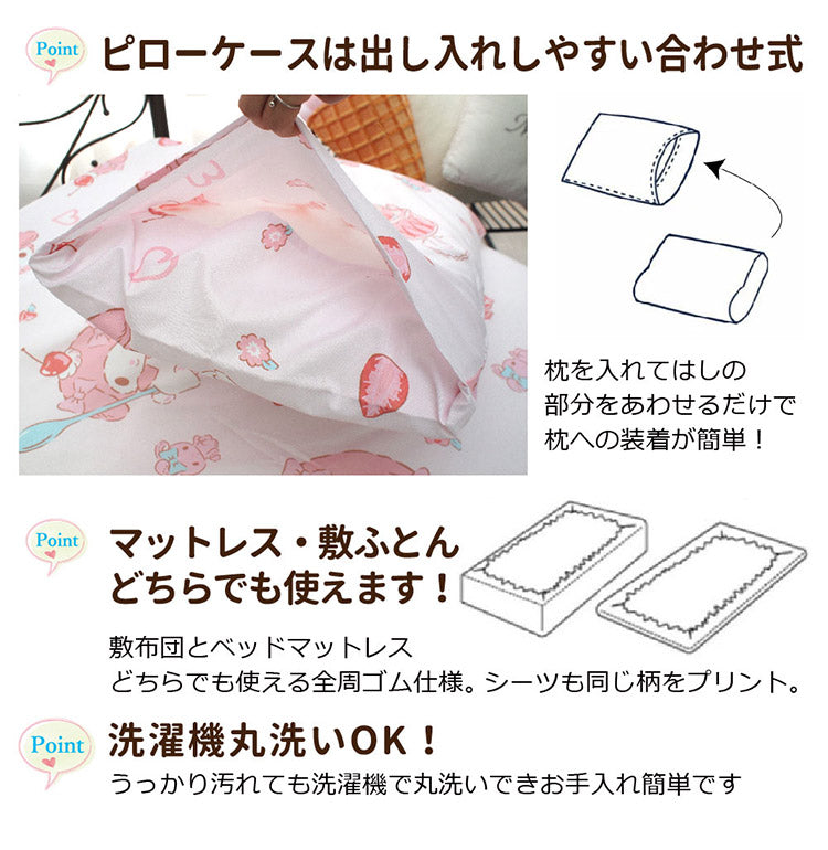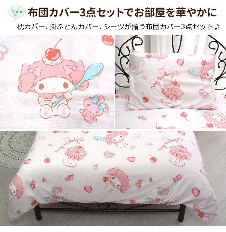 布団カバー3点セット マイメロディ シングル Sanriozone サンリオ 和式 洋式 布団カバー 掛布団カバー 3点セット ベッドシーツ 敷布団カバー 枕カバー ピローケース 洗濯可能 寝具(代引不可)