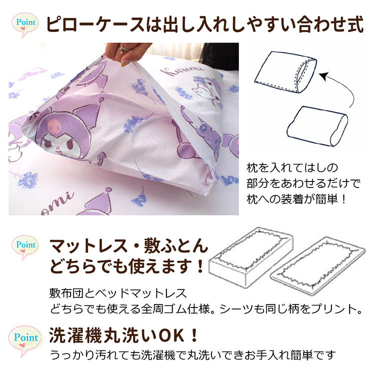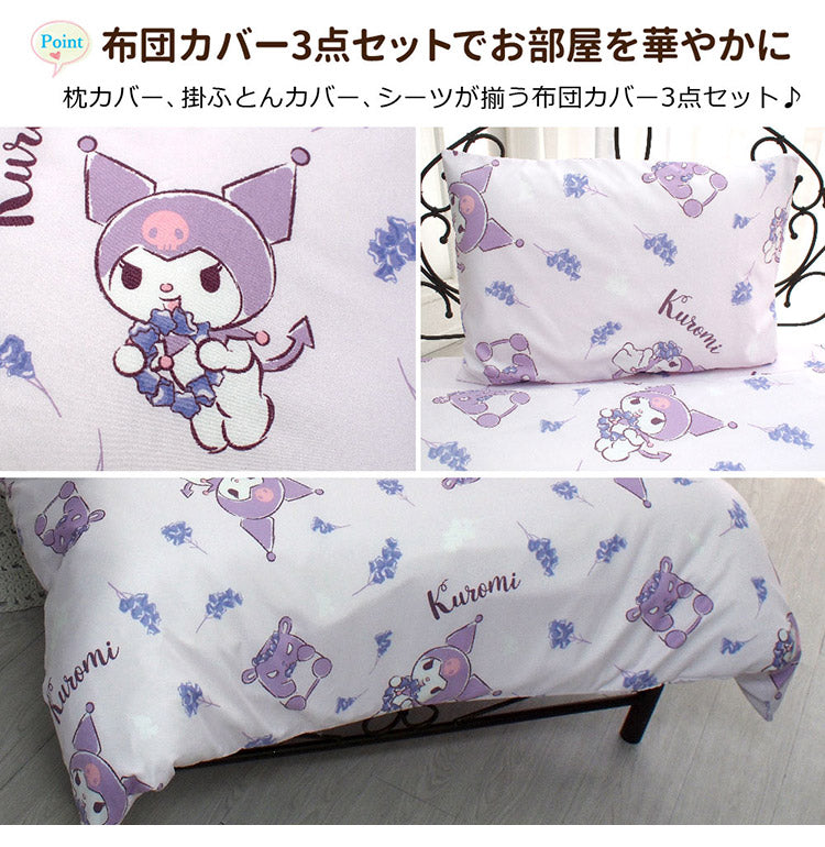 クロミ 布団カバー3点セット Sanriozone サンリオ シングル 和式 洋式 布団カバー 掛布団カバー 3点セット ベッドシーツ 敷布団カバー 枕カバー ピローケース 洗濯可能 寝具(代引不可)