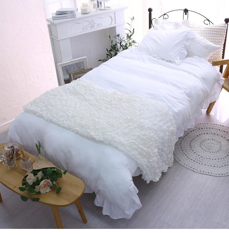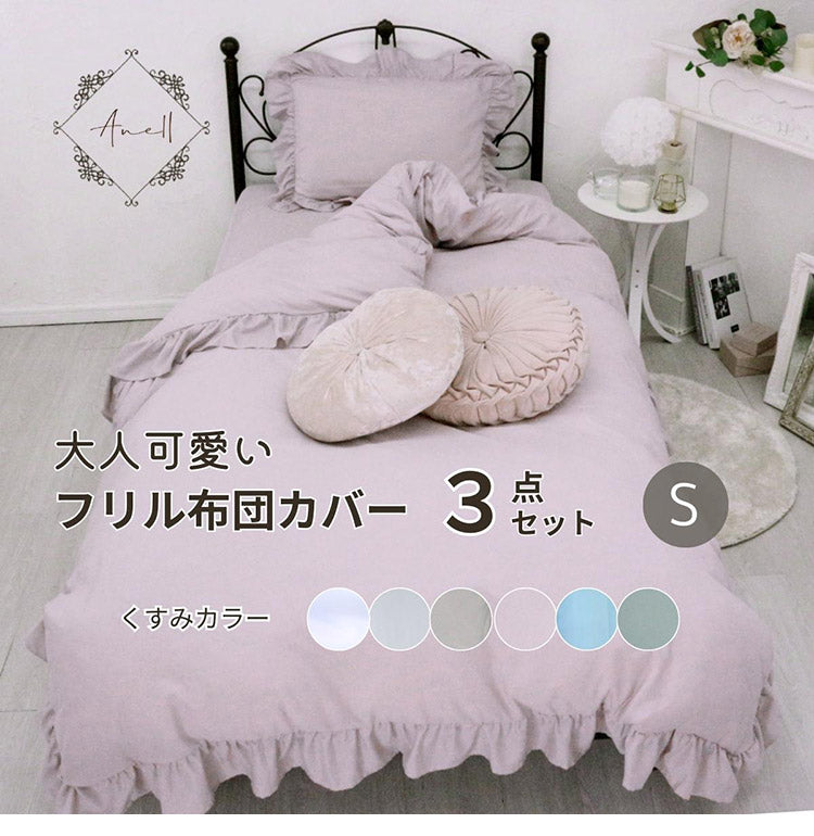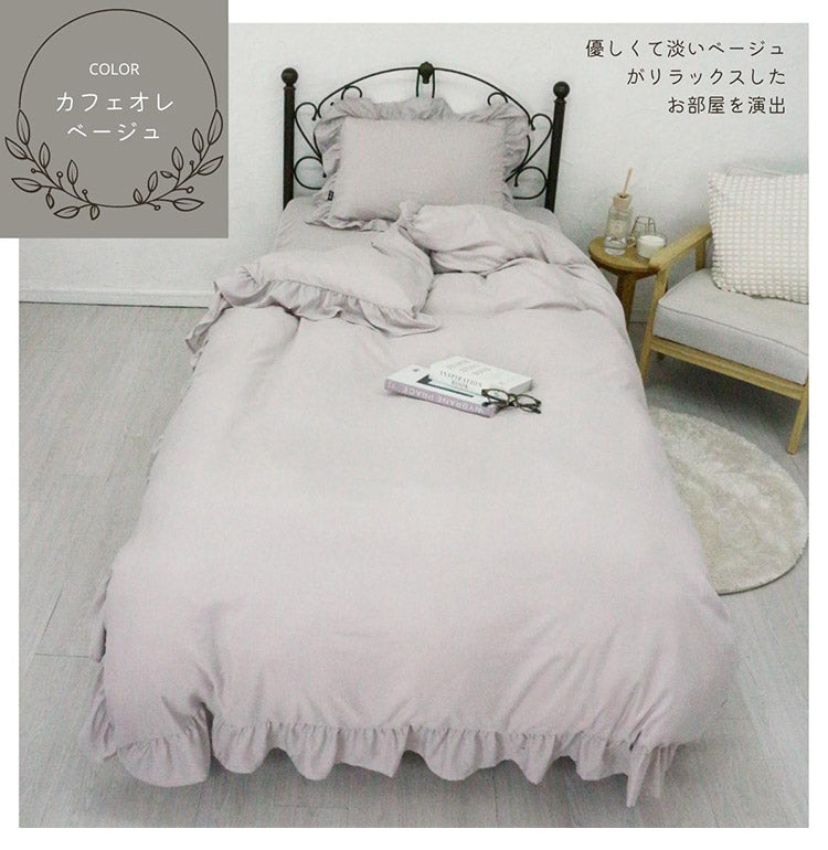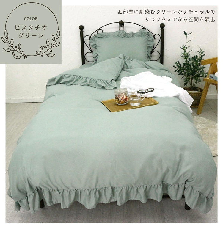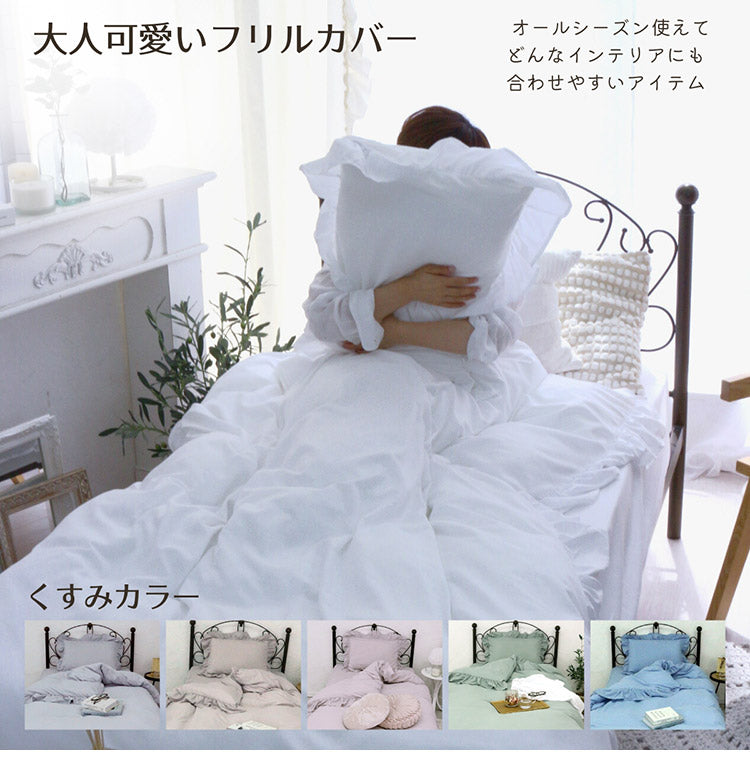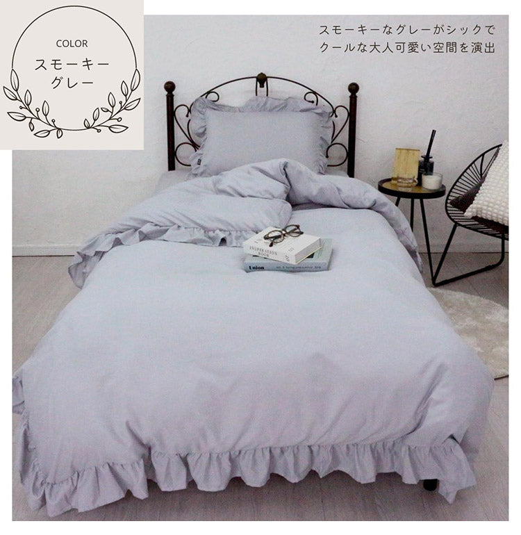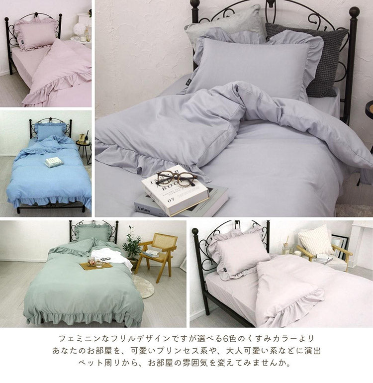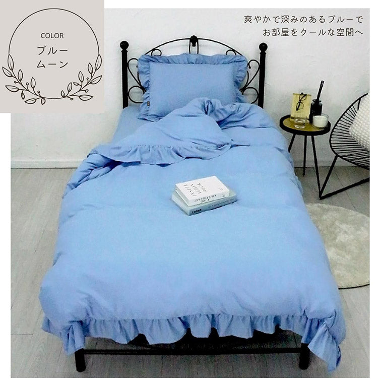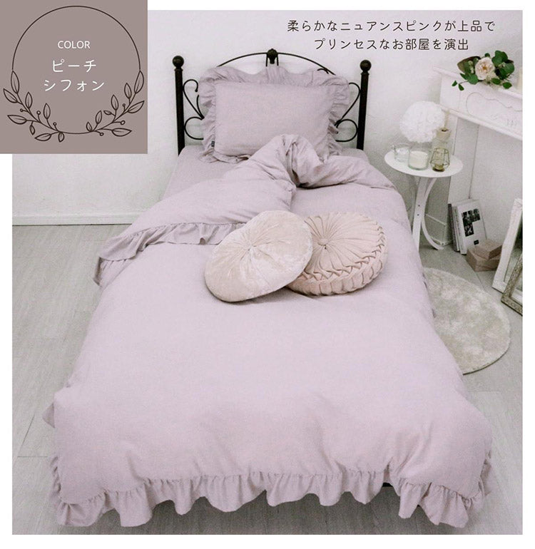 フリル 布団カバー3点セット シングル 枕カバー 敷布団 おしゃれ かわいい 掛け布団カバー ピローケース 敷布団カバー ボックスシーツ ピーチスキン 洗える オールシーズン 韓国風インテリア(代引不可)