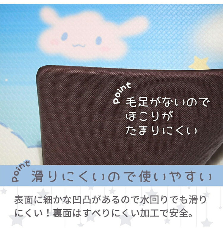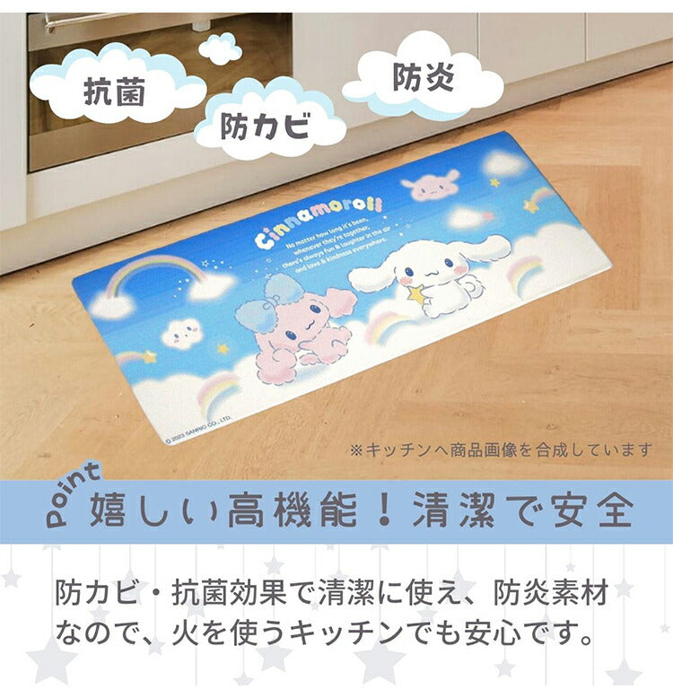 可愛いシナモロールデザインのPVCキッチンマットが登場!塩ビ素材を使用しているので、抗菌性、防炎性に優れているだけでなく、撥水性があり、水を弾いてくれ、さっと拭くだけでお手入れも簡単!