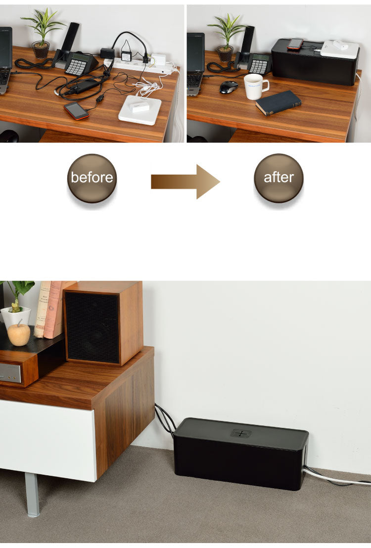 ケーブルボックス 2個セット 配線収納 コード コンセント すっきり きれい ブラック ホワイト 6口対応 幅 41.5cm 奥行 16cm 高さ14.1cm コンパクト タップ収納 シンプル 蓋つき 滑り止め付き(代引不可)