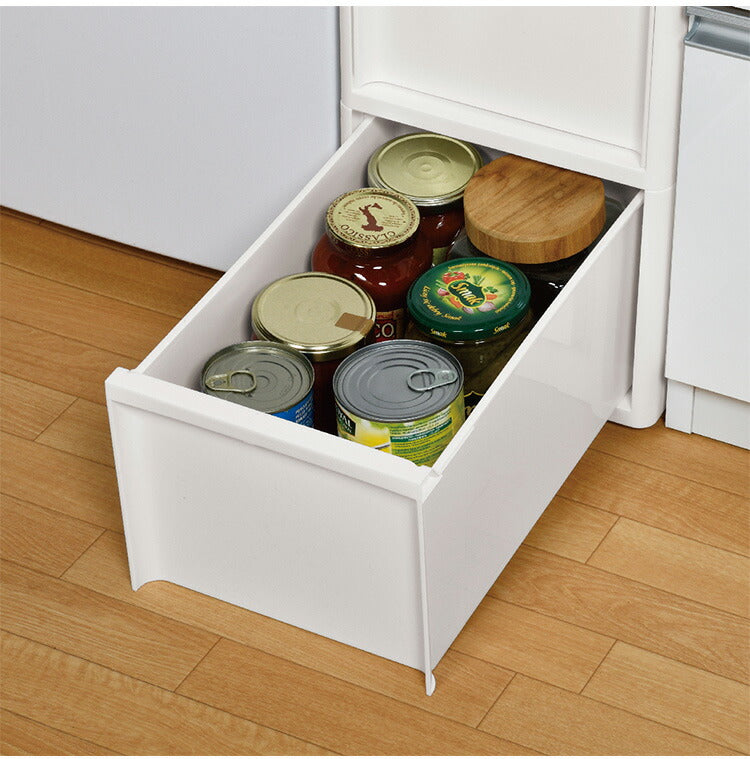 隙間収納 ミドルストッカー 幅26cm リセスタイル 日本製 引出し4段 M4段 キャスター付き JEJアステージ すき間収納 収納ボックス 収納ケース 白 ホワイト(代引不可)
