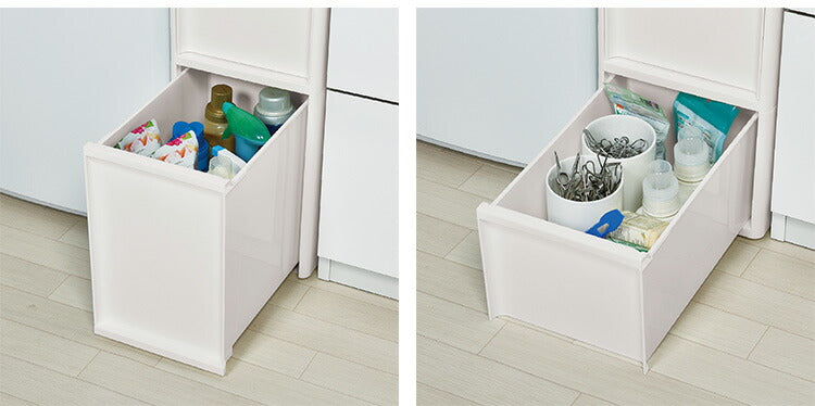 隙間収納 ミドルストッカー 幅26cm リセスタイル 日本製 引出し4段 S2段/M1段/L1段 キャスター付き JEJアステージ すき間収納 収納ボックス 収納ケース 白 ホワイト(代引不可)