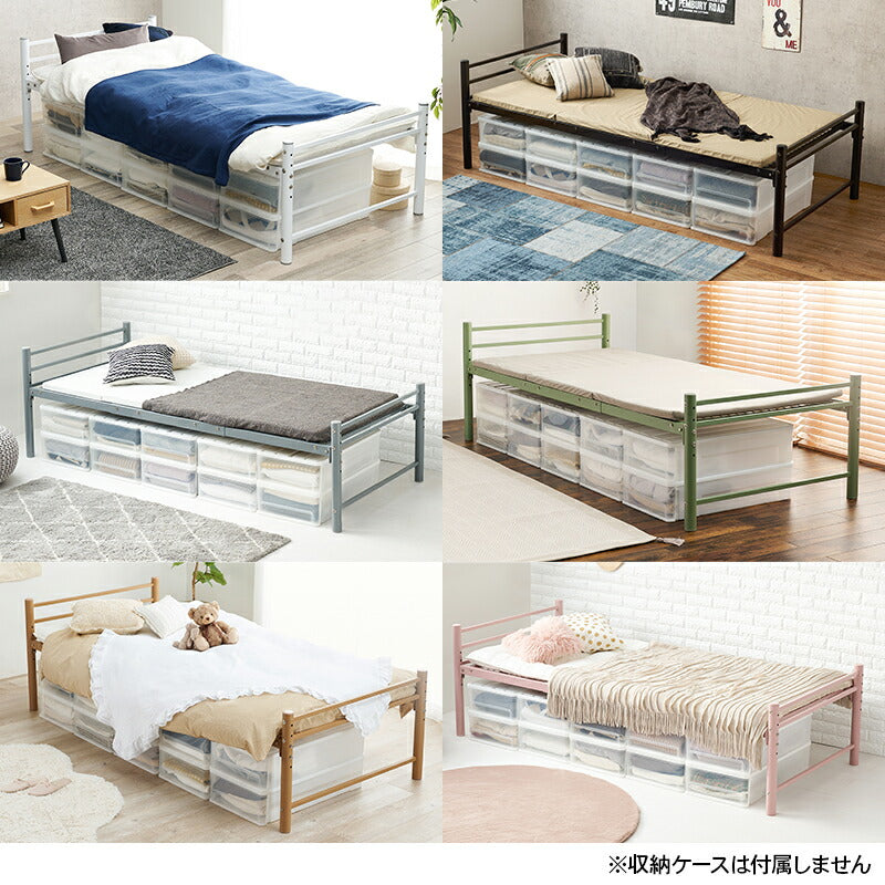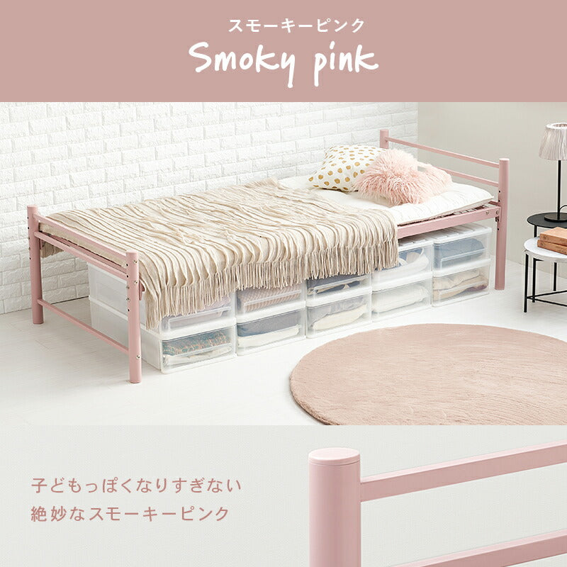 パイプベッド シングル 高さ調節4段階 ベッドフレーム 大容量収納 シングルベッド ベッド下収納 一人暮らし ベッド おしゃれ かわいい くすみカラー 韓国インテリア(代引不可)