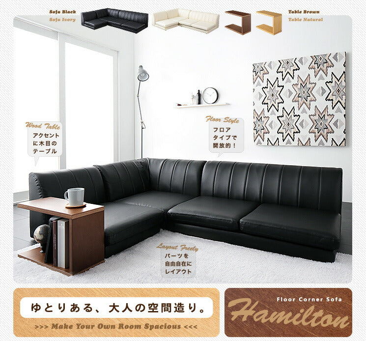 フロアソファ コンパクト フロアタイプ PVC レザー アイボリー ブラック おしゃれ 北欧 ナチュラル シンプル カウチソファ ソファー フロアコーナーソファ ローソファ ユニットソファ ハミルトン 組み合わせ自由 ロースタイル