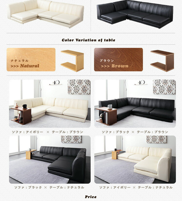 ソファ・オットマン:アイボリー、ブラック テーブル:ナチュラル、ブラウン