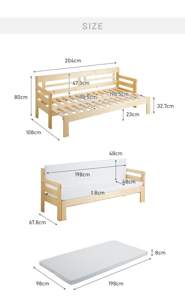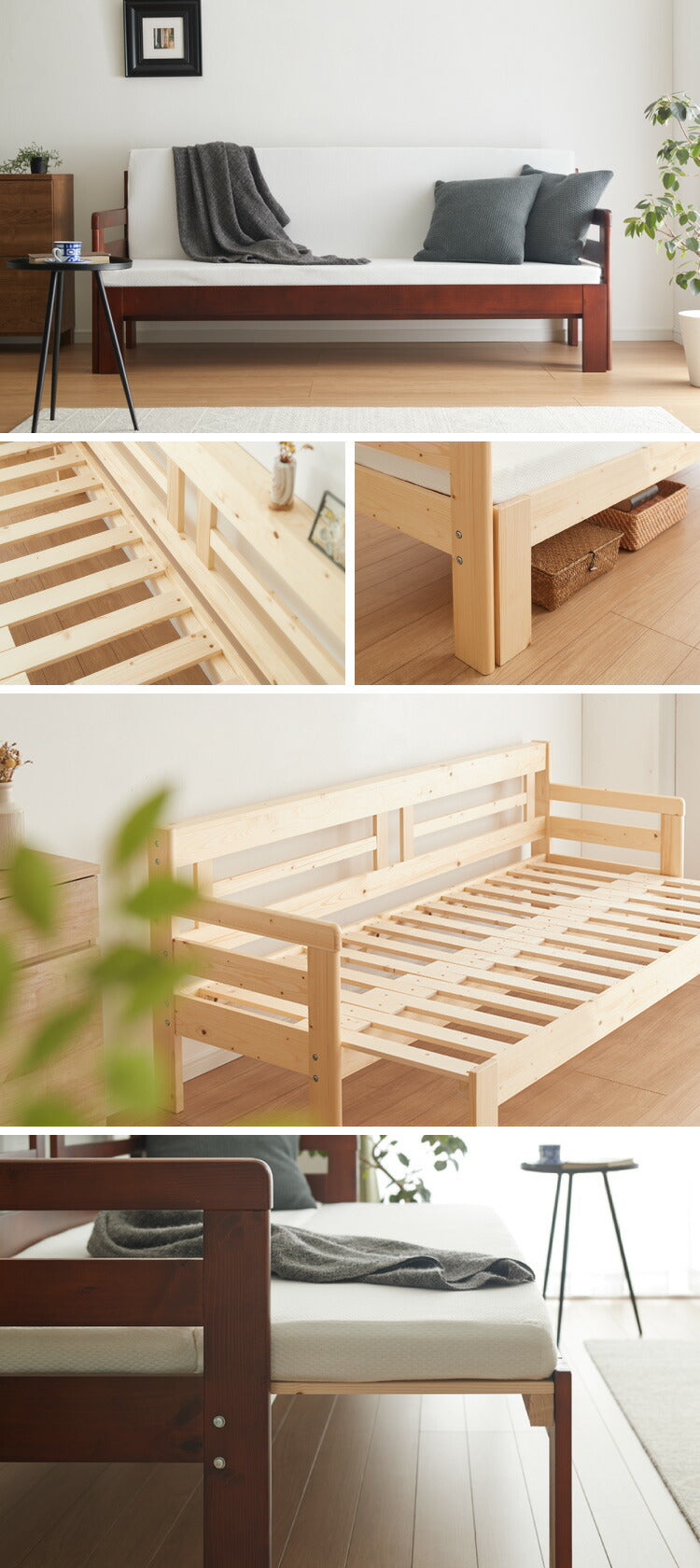天然木 すのこ ソファベッド コンパクト マットレス付き ソファー ベッド 木製 シンプル おしゃれ 北欧 マットレス ソファ 伸縮式 伸縮できる(代引不可)