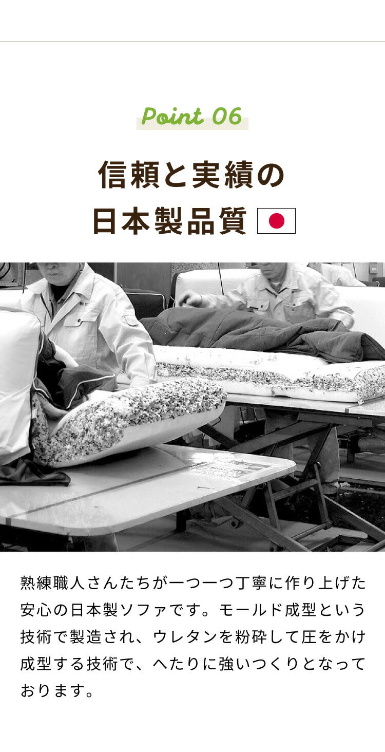 コンパクトで様々なインテリアに合わせやすいフロアソファ。国内の職人が1点ずつ丁寧に仕上げて、作り上げました。