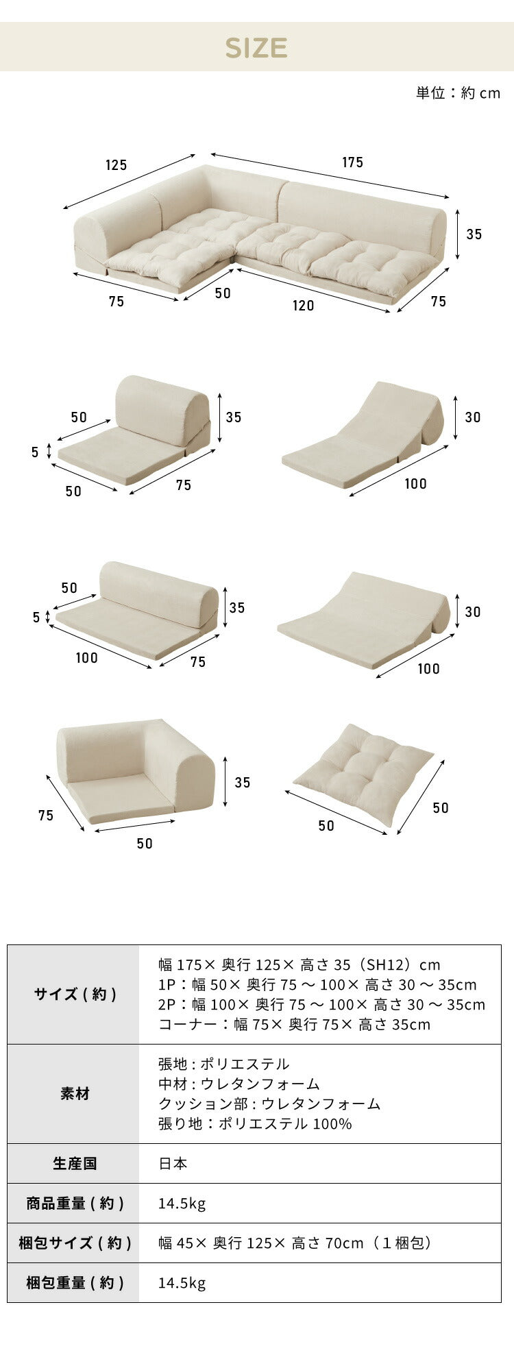 コーナー部分:幅75×奥行き75×高さ35(座面高12)cm