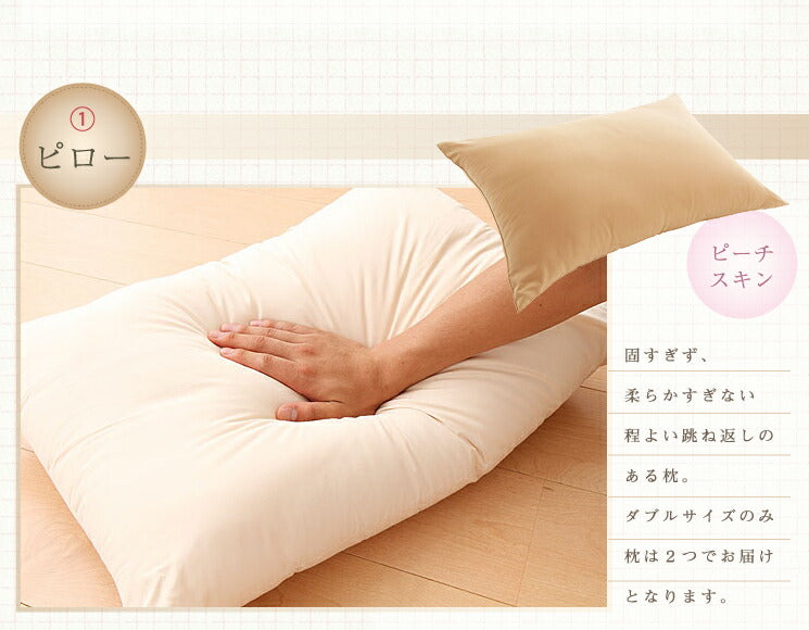 ※ダブルのみ、ピロー、ピロケースは2つでお届けになります。