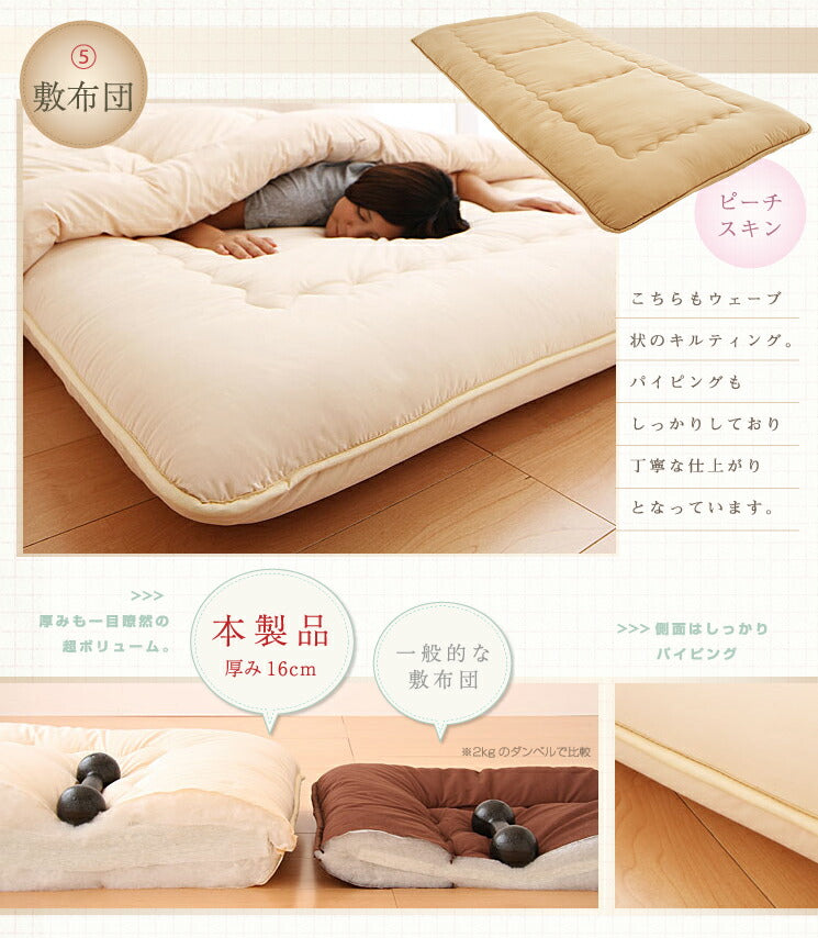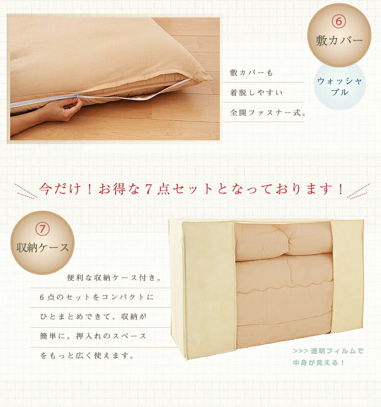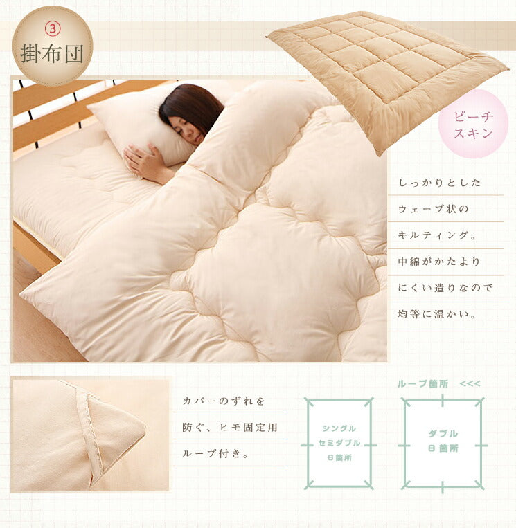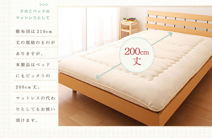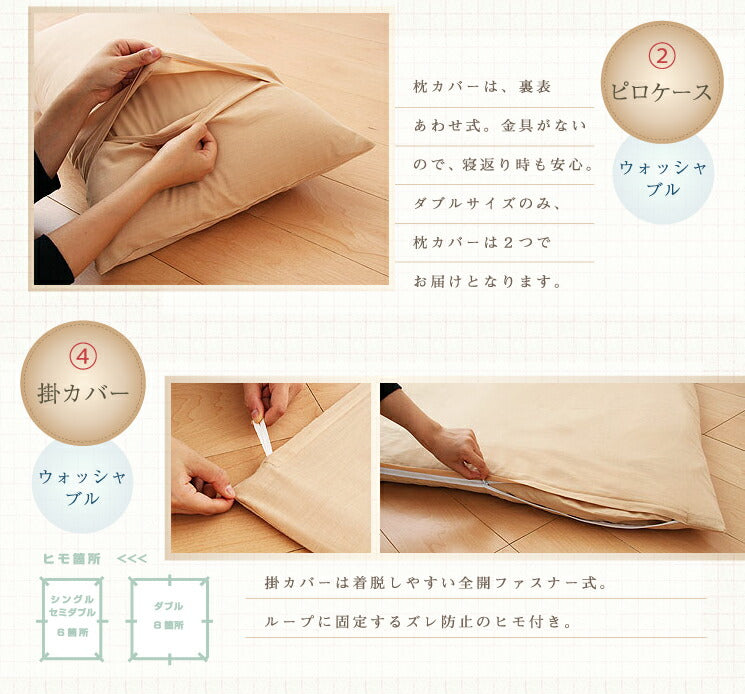 詰め物…シングル:ポリエステル80%、ウール20%、セミダブル:ポリエステル76%、ウール24%