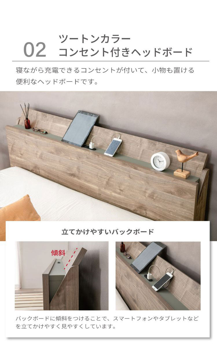 ベッドフレーム ダブル コンセント付きバイカラーデザインローベッド 千 ベットフレーム ベッド 4-001 BR D パームループ ツーバイカラーデザインローベッド コンセント バイカラー(代引不可)