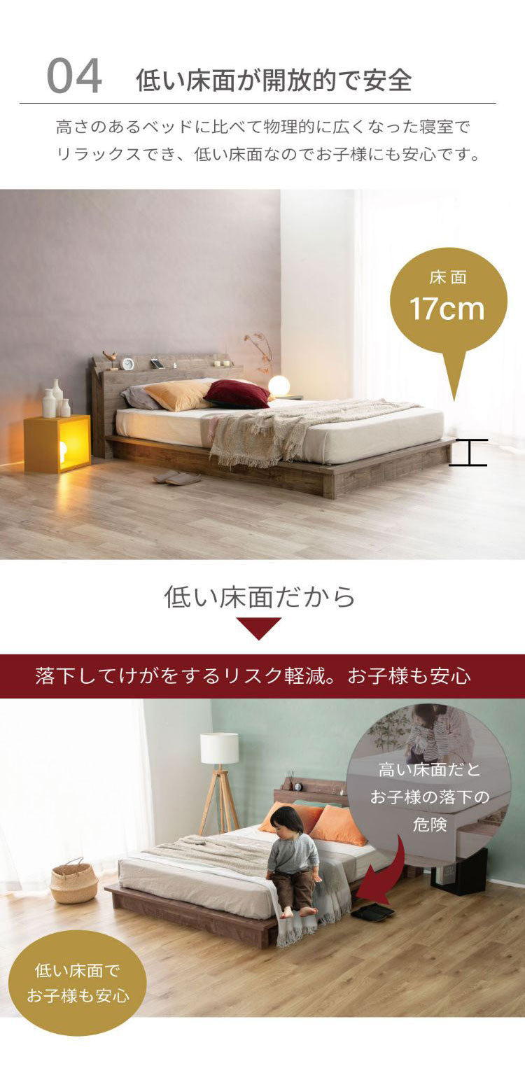 ベッドフレーム セミダブル コンセント付きバイカラーデザインローベッド 千 ベットフレーム ベッド 4-001 BR SD パームループ ツーバイカラーデザインローベッド コンセント バイカラー(代引不可)