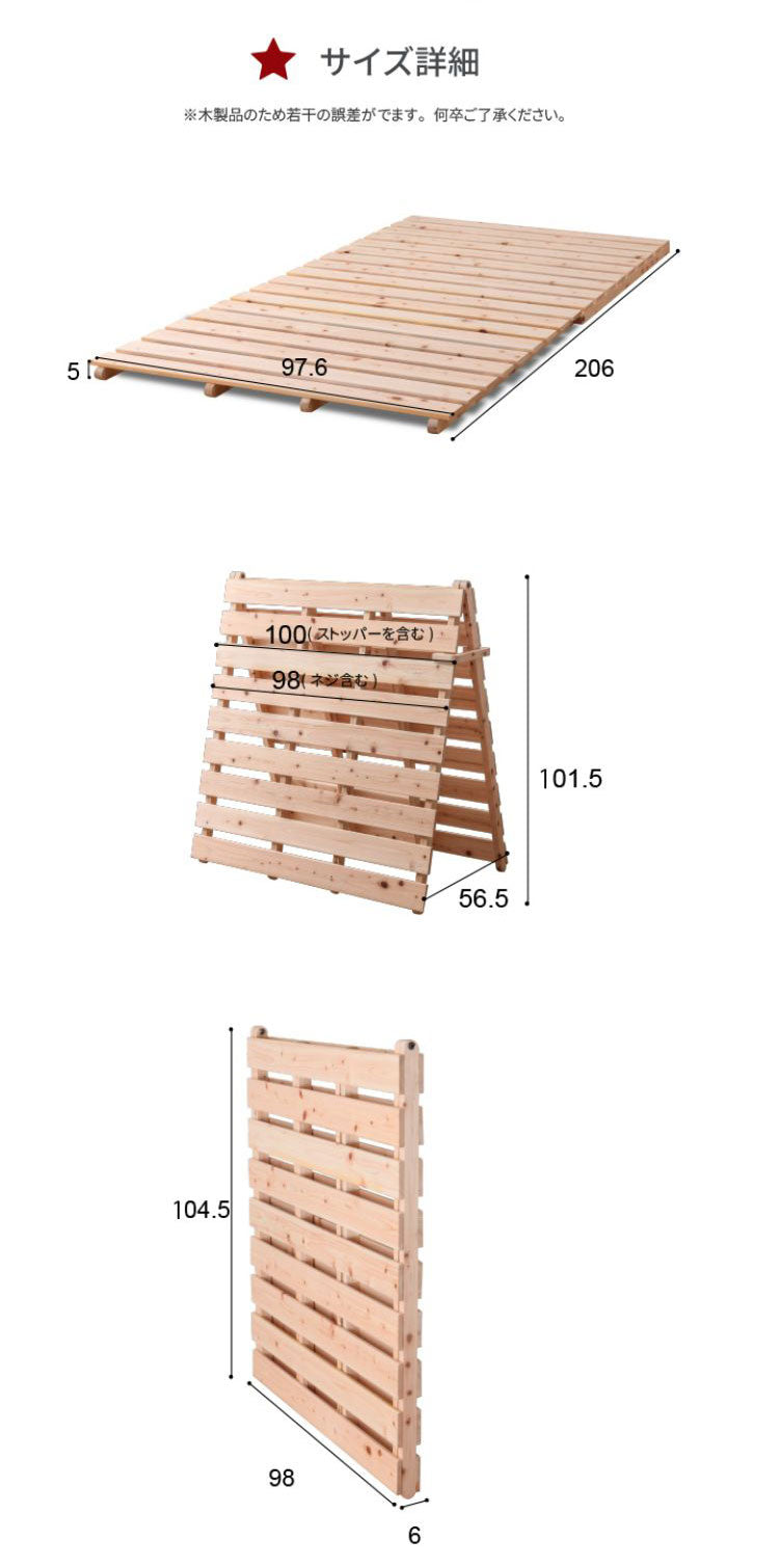 国産のヒノキ材を贅沢に使用した折り畳み式のスノコベッドです。