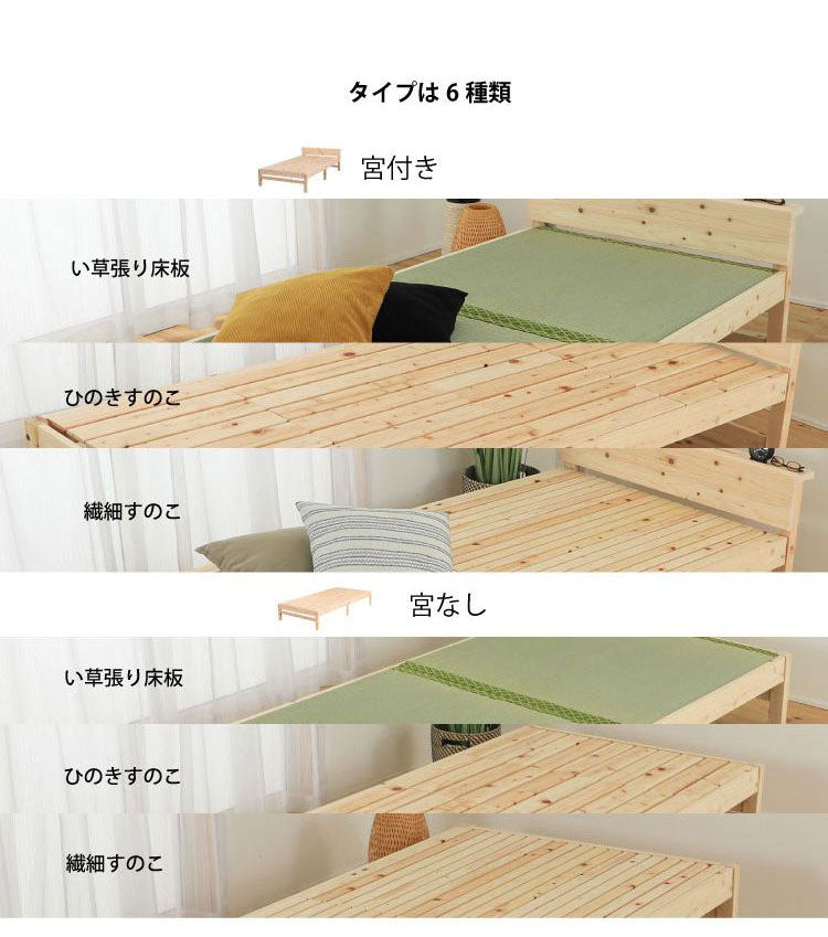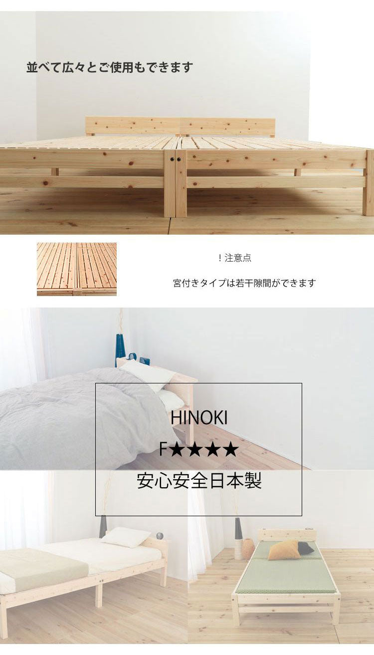 国産のヒノキ材を贅沢に使用したスノコベッド。コンパクトな宮無しタイプ