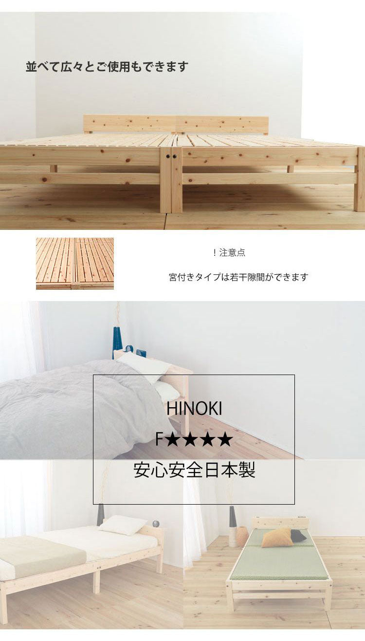 国産のヒノキ材を贅沢に使用したスノコベッド。便利な棚コンセント付き。1口1200W。