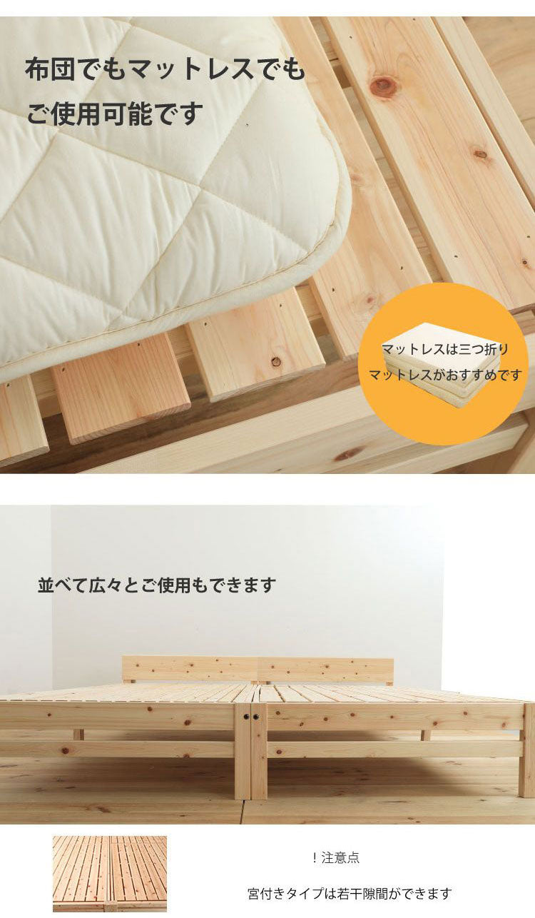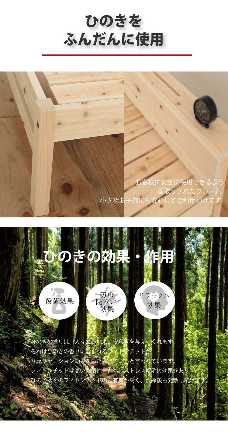 国産のヒノキ材を贅沢に使用したスノコベッド。コンパクトな宮無しタイプ。イグサ床板タイプ