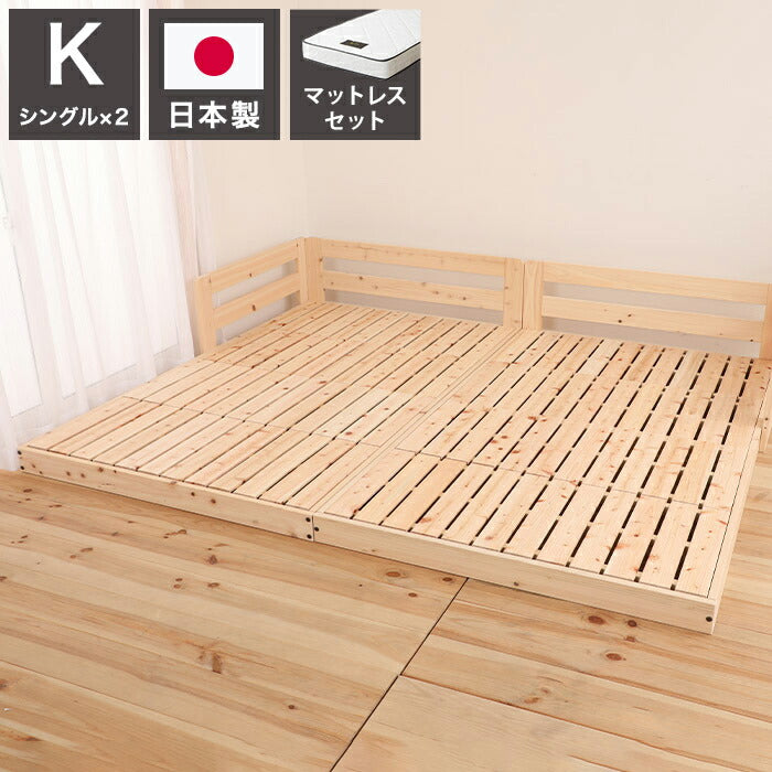 国産のヒノキ材を贅沢に使用したローベッド。金具でピッタリ連結できるので家族で川の字で寝る事ができます。