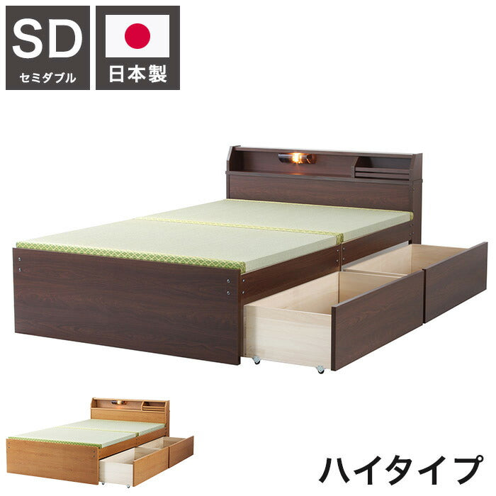 ベッドフレーム セミダブル 照明付き 日本製 い草張り 収納ベッド ハイタイプ ベットフレーム ベッド ベット 寝具 インテリア 家具 BCB540 LBR DBR SD セミダブルサイズ SDサイズ(代引不可)