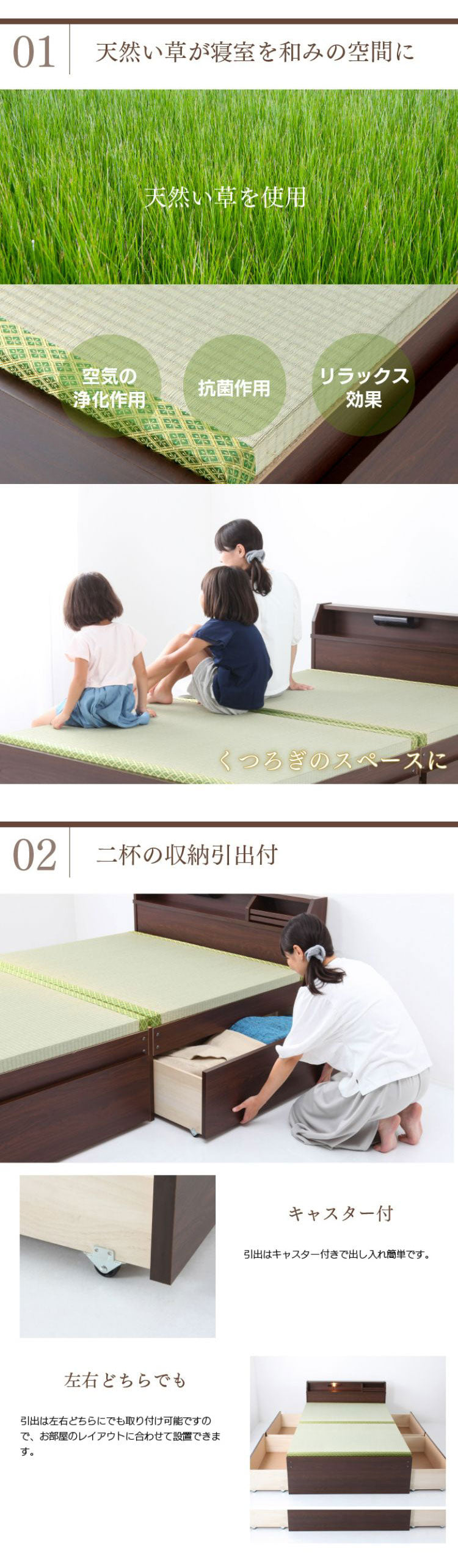 ベッドフレーム ダブル 照明付き 日本製 い草張り 収納ベッド ロータイプ ベットフレーム ベッド ベット 寝具 インテリア 家具 BCB540 LBR DBR D ダブルサイズ Dサイズ(代引不可)