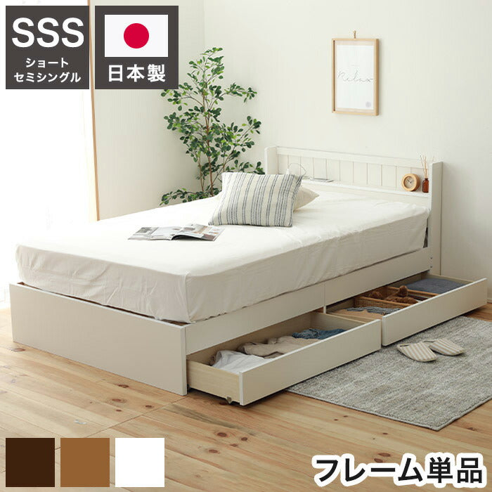 ベッドフレーム ショートセミシングル 引き出し収納付きベッド ベットフレーム ベッド ベット 寝具 インテリア 家具 FMB92 WH BR NA (S)SS ショート セミシングル 引き出し 収納(代引不可)