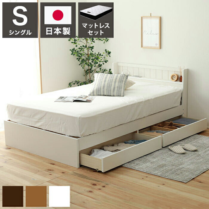 豊富なサイズ展開から選べる収納ベッド。棚には便利なコンセント付き