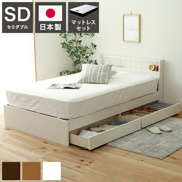 豊富なサイズ展開から選べる収納ベッド。棚には便利なコンセント付き