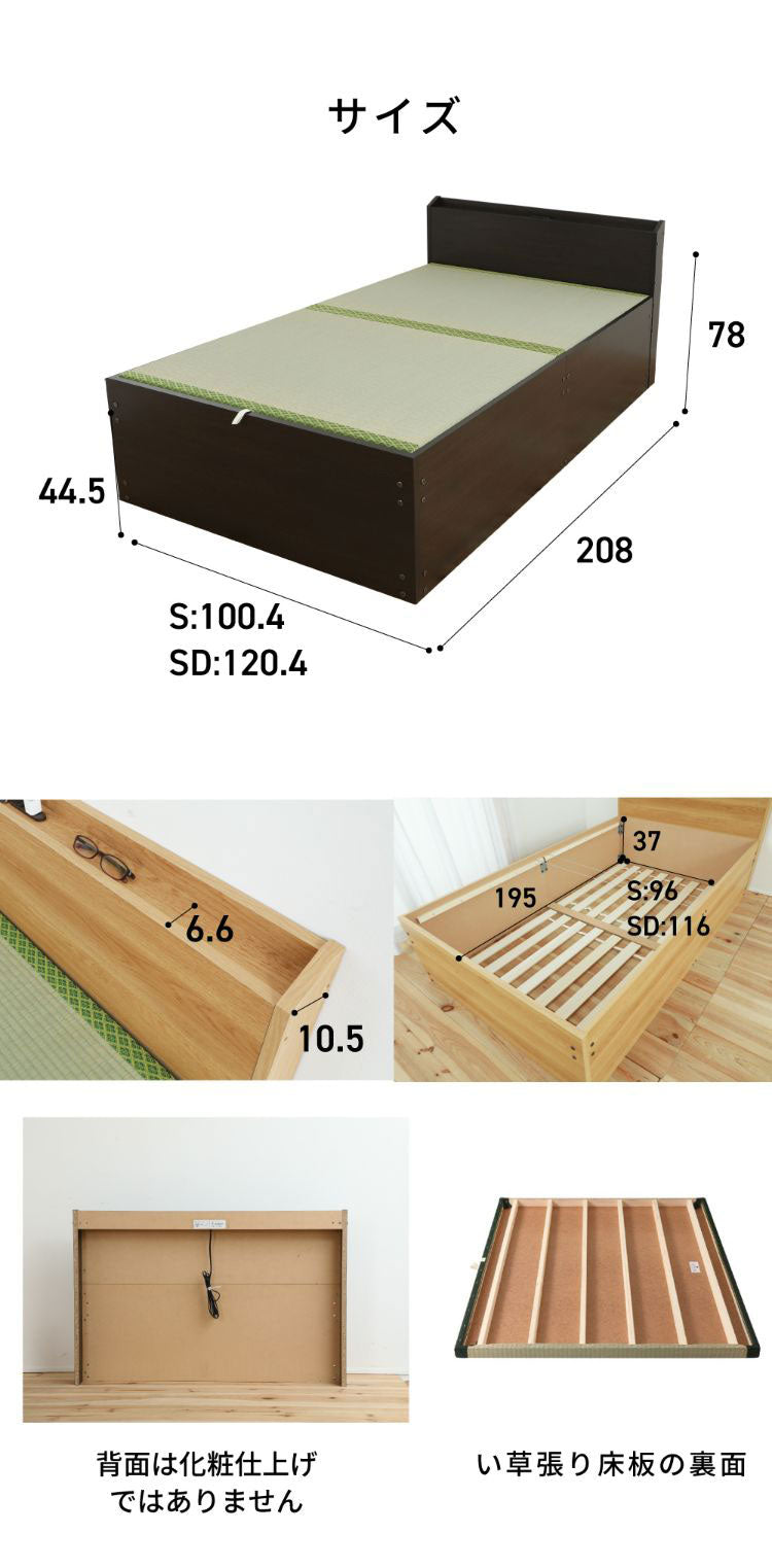 ベッドフレーム セミダブル 宮棚 コンセント付き大容量収納い草ベッド ブラウン ベットフレーム ベッド ベット 寝具 NCB303M NA BR SD セミダブルサイズ SDサイズ 大容量 収納 い草 コンセント(代引不可)