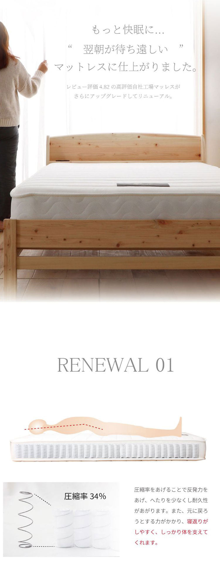 中材:ウレタン、不織布、抗菌綿、ポケットコイル